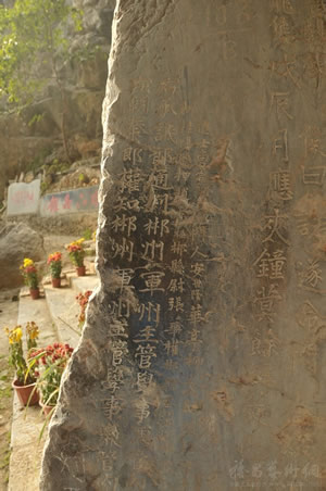 萬華巖摩崖石刻群 位于郴州市北湖區(qū)萬華巖鎮(zhèn)萬華巖國家級風(fēng)景名勝區(qū)內(nèi)。萬華巖洞內(nèi)留下了大量的宋代、清代石刻。其中立于清咸豐十年(1860)三月的《坦山萬華巖敘》碑,高1.5米,寬1.0米,厚0.3米,碑文800字,楷書,字跡清晰。記載了太平軍攻入郴州和退出郴州的時間、地點及當(dāng)年太平軍犯郴及當(dāng)?shù)匕傩盏挚沟那闆r。