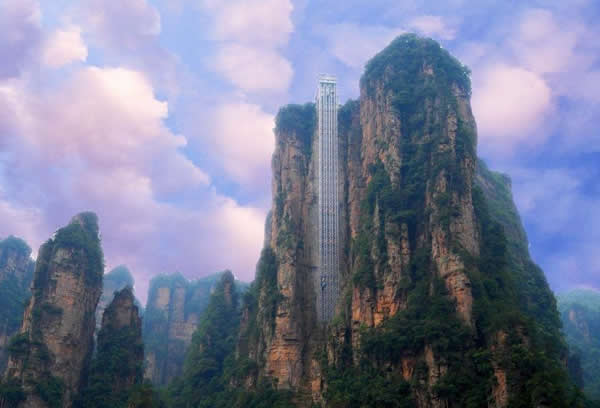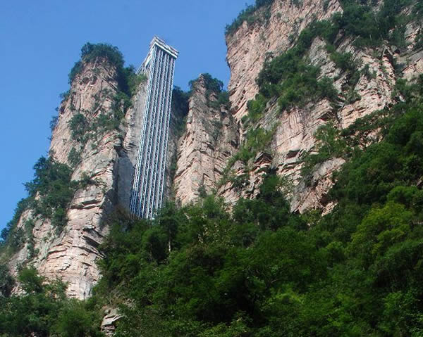 百龍?zhí)焯菀挥谑澜缱匀贿z產(chǎn)張家界武陵源風(fēng)景名勝區(qū),1999年9月動工,2002年4月投入營運(yùn),電梯的主要設(shè)備由德國知名電梯公司研究生產(chǎn),耗資人民幣1.8億元,被譽(yù)為“世界上最高、運(yùn)行速度最快、載重量最大的電梯”,也因此被載入吉尼斯世界紀(jì)錄。
