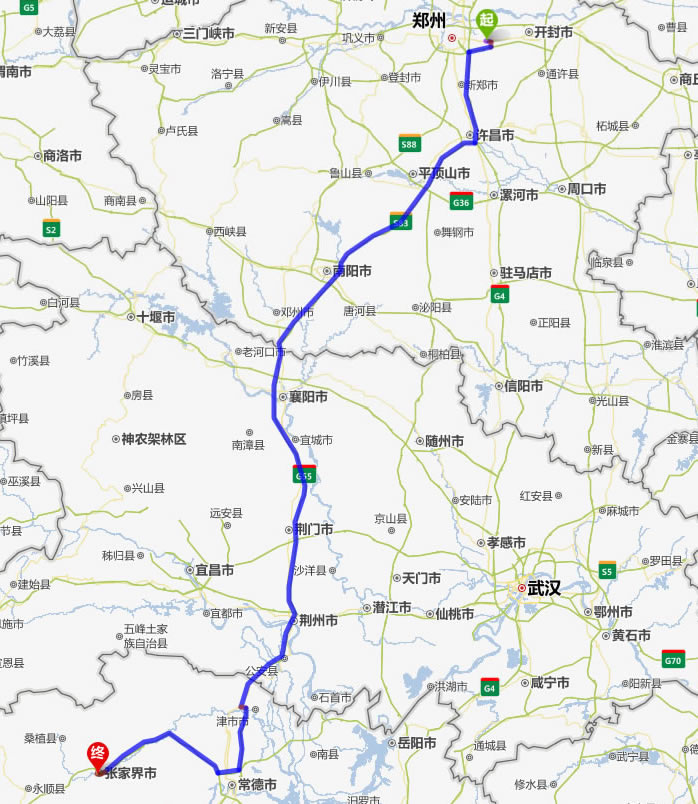 中牟縣去張家界自駕車(chē)自助游線(xiàn)路圖全程高速):