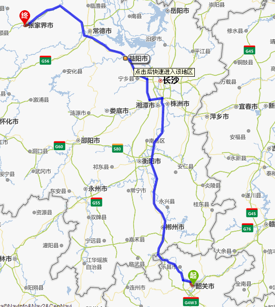 韶關(guān)去張家界自駕車自助游線路圖全程高速):