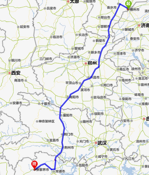 德州去張家界自駕車自助游線路圖全程高速):