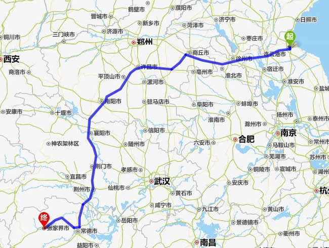 連云港去張家界自駕車(chē)自助游線路圖全程高速):