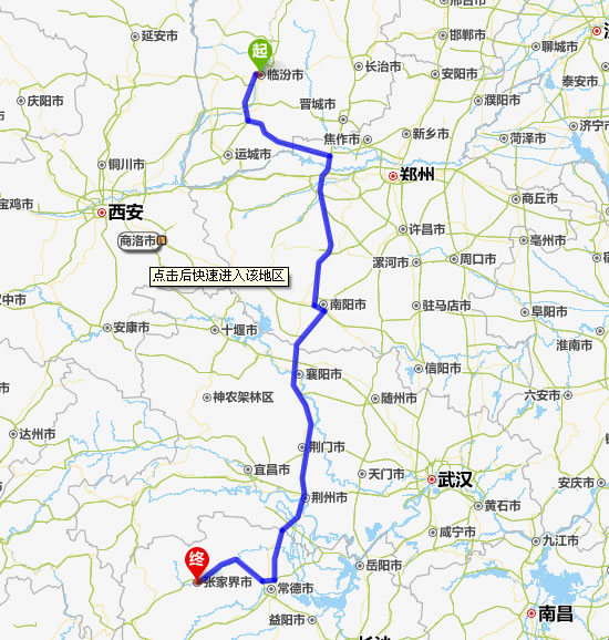 臨汾去張家界自駕車自助游線路圖全程高速):