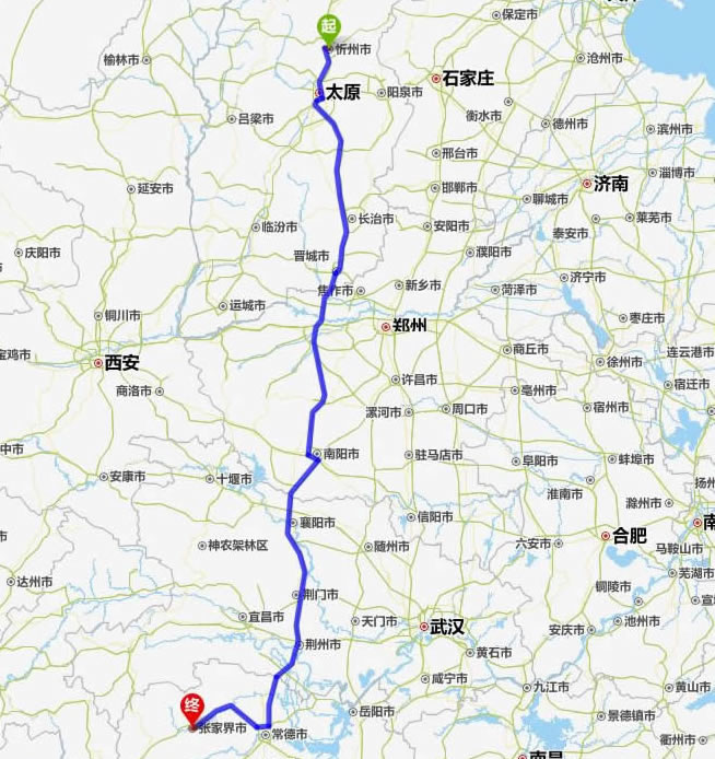 忻州去張家界自駕車(chē)自助游線路圖全程高速):