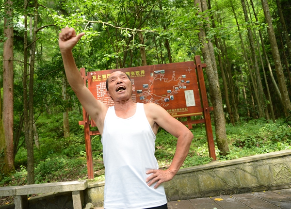 二是老人有個(gè)強(qiáng)健硬朗的身板。十多年前,趙如秋查出患有高血壓和腎結(jié)石,他就堅(jiān)持每天在景區(qū)爬山鍛煉身體,結(jié)果還真的有效,不僅腎結(jié)石消除了,高血壓有所緩解,身體也結(jié)實(shí)得很。如今趙如秋老人雖然68了,但說(shuō)話(huà)中氣十足,走路健步如飛,還能挑上150斤擔(dān)子徒步登上鷂子寨、黃石寨,沿路還能唱山歌。