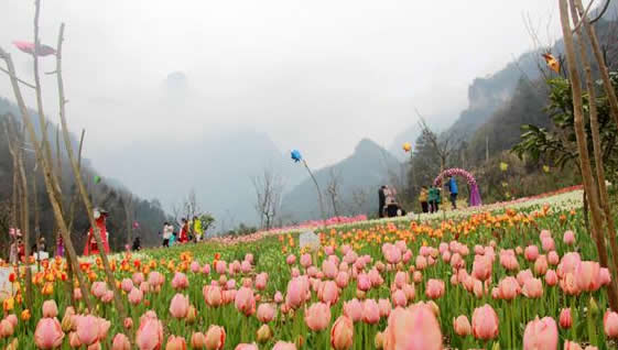 現(xiàn)在位置:張家界旅行社->旅游資訊 -> 感受三月煙雨張家界 游客喜賞老道灣景區(qū)美麗郁金香